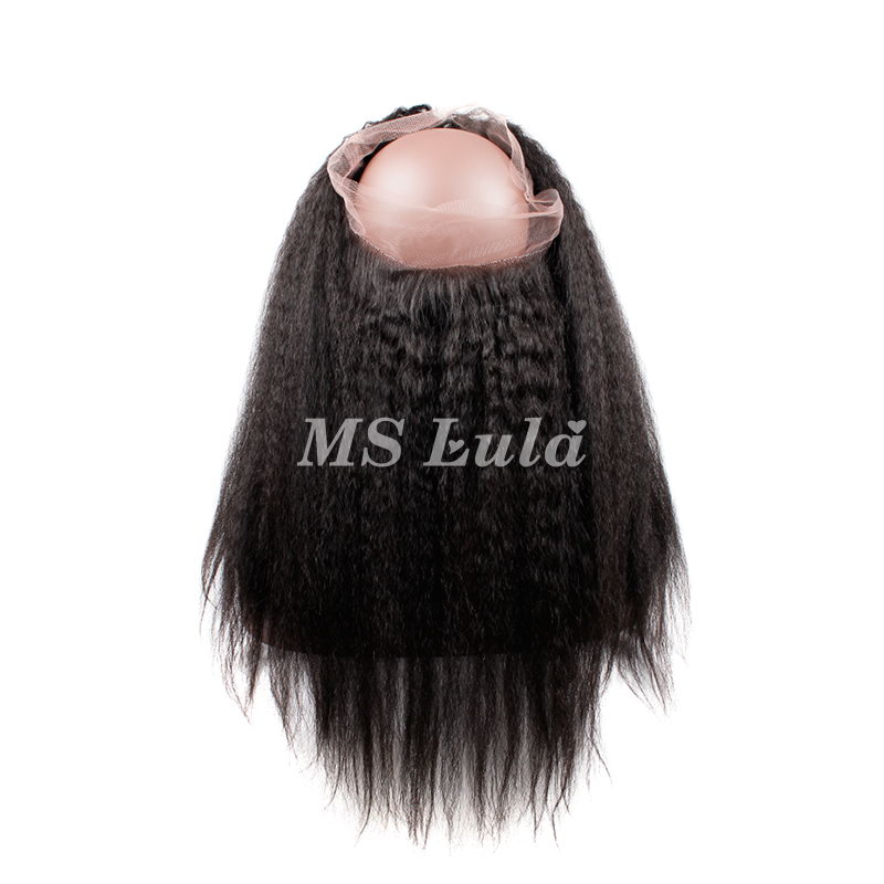 Virgin Hair Kinky Straight 360 Transparent Lace Frontal Closure 22.5x4x2 With Adjustable Strap
